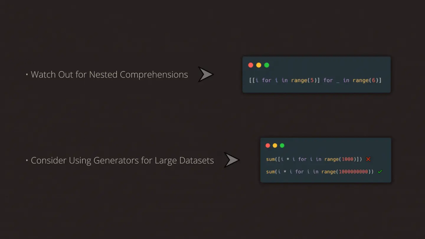 We went through what are list comprehensions, why and when they are useful, and how to use them. But there are some caveats we should consider when we decide to use them.