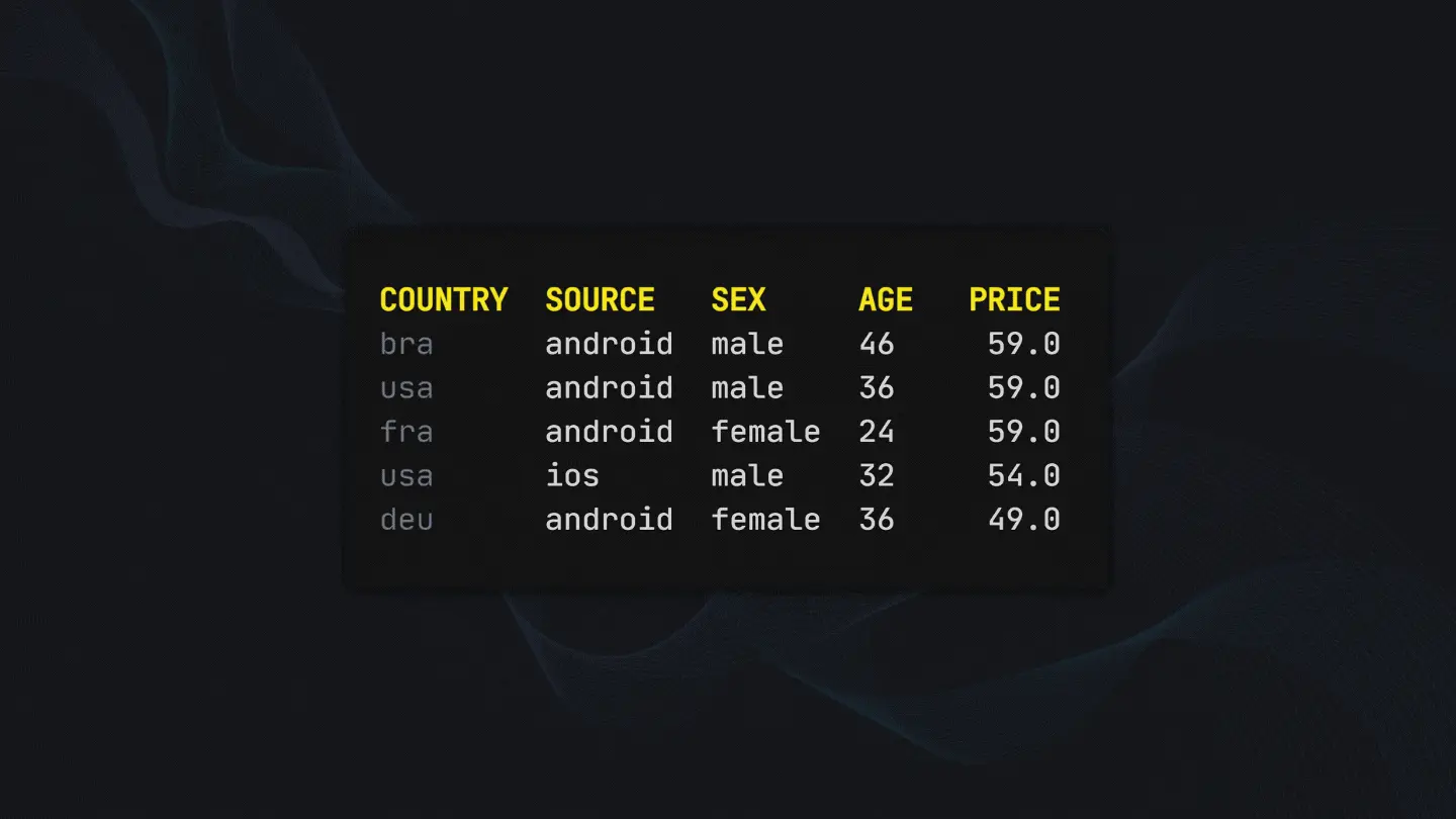 There are 2 unique sources, 6 unique prices, and 6 unique countries available in the dataset. The minimum age is 15 while the maximum is 66. Brazil is the country with the most money spent while Turkey has the highest money spent per person.