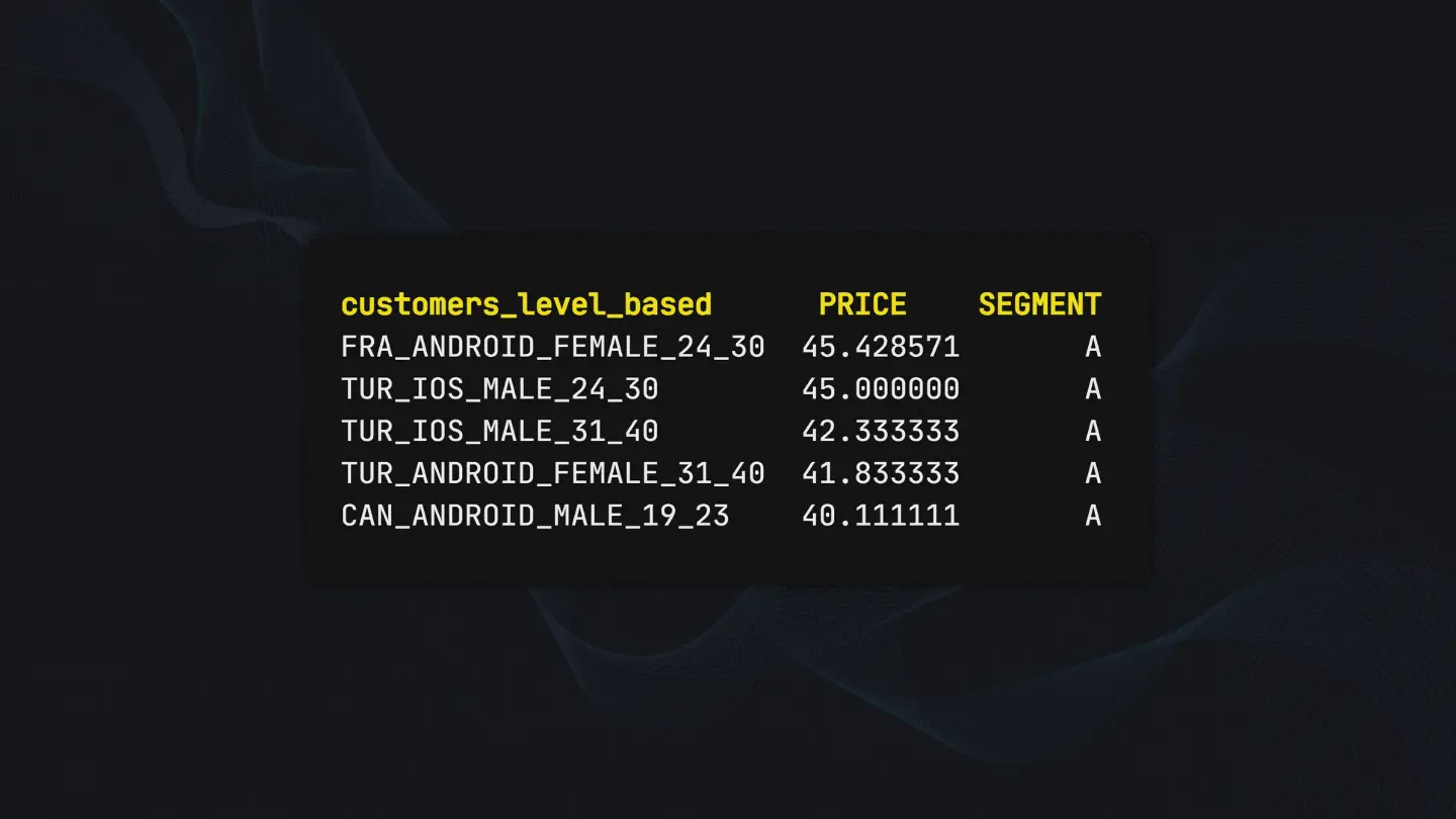For example, there will be a FRA_ANDROID_FEMALE_24_30 persona for every entry available between ages 24 to 30. To fix this we group by customers_level_based column and get the mean price for the category.
